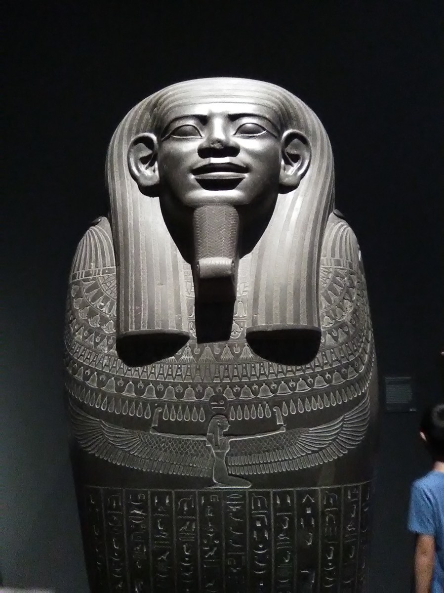Sarcophagus of Wahibreemakhet; Egyptian, Dynasty 26, c. 600 BC. The hieroglyphic inscription on this large sarcophagus identifies the deceased as Wahibreemakhet, a high official who held the title of Royal Sealer. Although he bears an Egyptian name and was buried in the manner of an important Egyptian courtier, the names of his father and mother, Alexikles and Zenodote, are Greek. He was likely born in Egypt to immigrant parents, and his father may have been a military commander in the service of Psamtik (ruled 664-610 BCE)